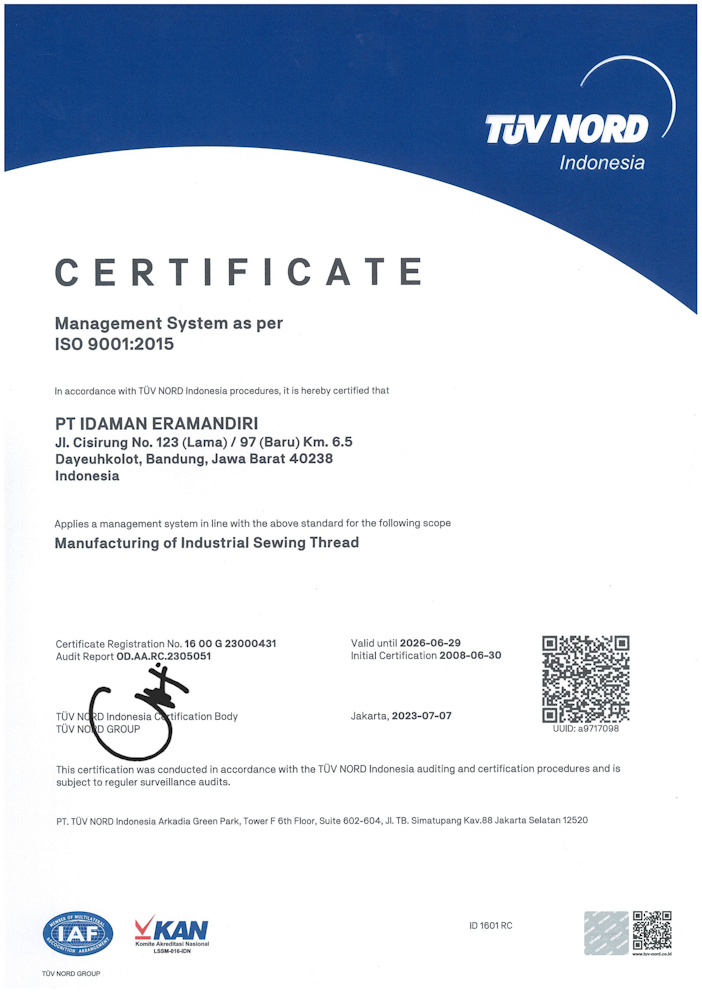 Berikut ini adalah list sertifikat yang didapatkan oleh PT. IDAMAN ERAMANDIRI